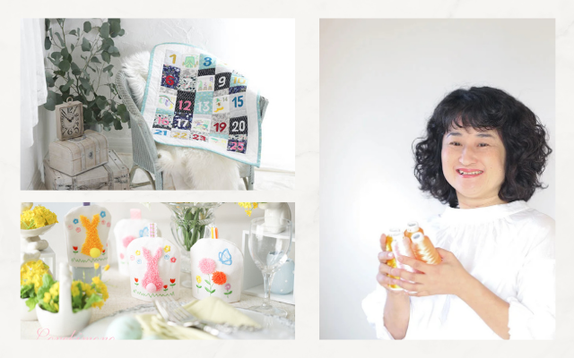 また、これからミシン刺繍を始めたい方や、もっともっと楽しみたい方と、ミシン刺繍のアイディアを一緒に紡いでいくために、講座やYouTubeでサポートしています。